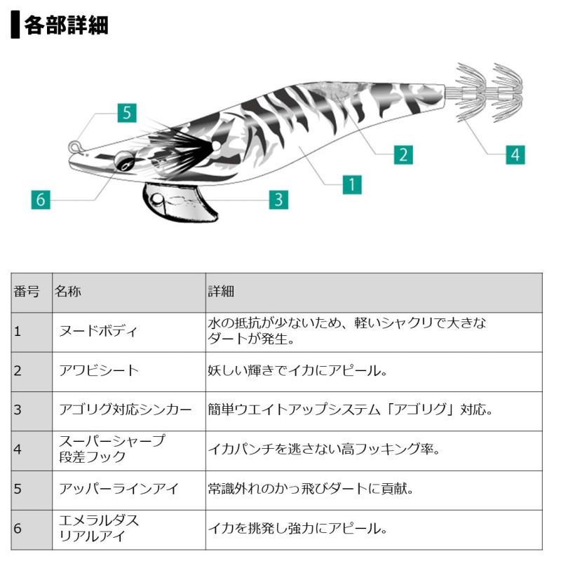 (沈降スピードは状況により変化します)■ヌードボディ布巻きのエギでは出すことのできないカラーリングを実現。