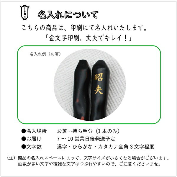 【名前入れ】 お箸に金文字印刷で1本のみにお入れします。