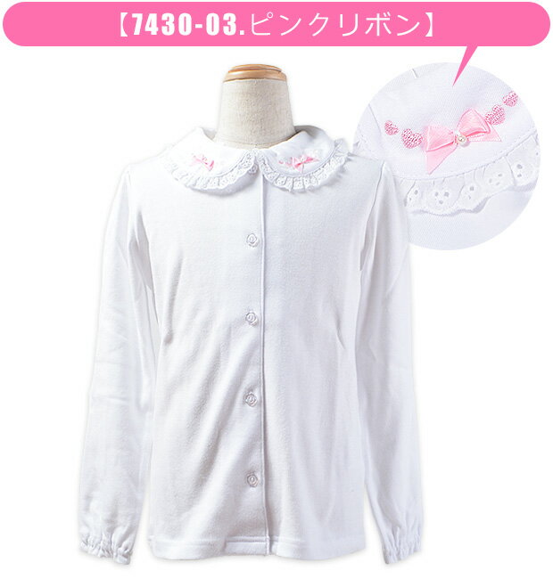 【送料無料】綿100% 女子スクールブラウス 女児 長袖 丸襟 白 前開 衿モチーフ フラワー キッズ 女の子 白ブラウス 子供ブラウス 幼稚園 小学生制服 スクール ブラウス ニットブラウス 100 110 120 130cm