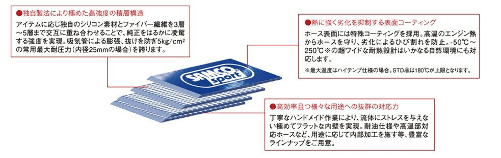 サムコは高温や目まぐしく変化する自然環境、経年劣化など、より過酷な条件下にもエンジンと補器類を確かな信頼性で結び、健康なエンジン性能とさらなるハイパワーをも支える究極のエクイップメントです。
